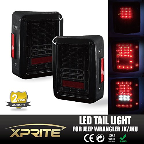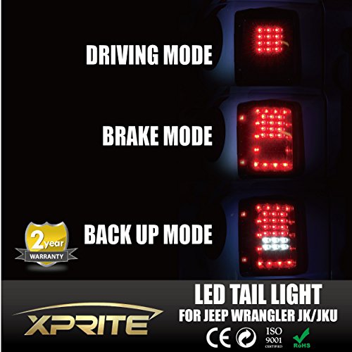 Package Including: One Pair of Xprite Smoke Lens Red LED Tail Light Assembly w/ Turn Signal & Back Up For Jeep Wrangler JK JKU 2007 - 2017 (2 Year Complete Manufacture Warranty - Lifetime Customer Support!)