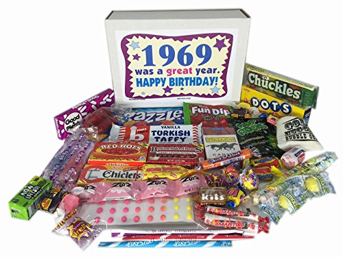-. Feature : Contains 30 different kinds of retro nostalgic candy / 1969 birthday gift box will bring back great childhood memories / Makes a fun and unique gift for any candy lover / Great for someone who has everything / Box measures 9.5 x 7 x 3 inches and comes shrink wrapped