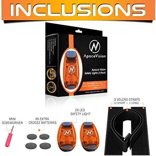 LED Safety Light (2 Pack) + FREE Bonuses | Clip On Strobe/Running Lights for Runners, Dogs, Bike, Walking | The Best High Visibility Accessories for Your Reflective Gear, Bicycle etc (Orange)
