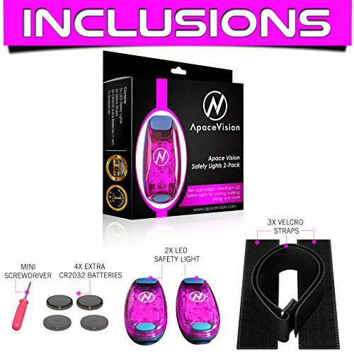 LED Safety Light (2 Pack) + FREE Bonuses | Clip On Strobe/Running Lights for Runners, Dogs, Bike, Walking | The Best High Visibility Accessories for Your Reflective Gear, Bicycle etc (Pink)