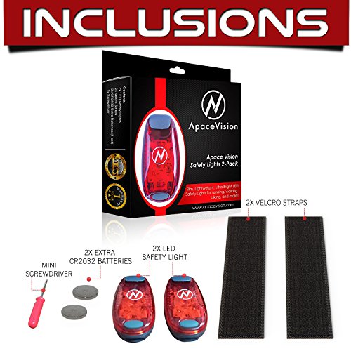 Apace Vision LED Safety Light (2 Pack) with Bonus Items - Clip On Strobe / Running Lights for Runners, Dogs, Bikes, Walking and More, Green