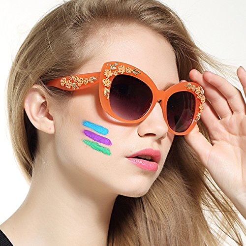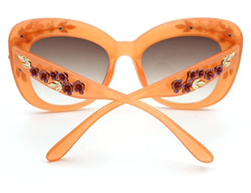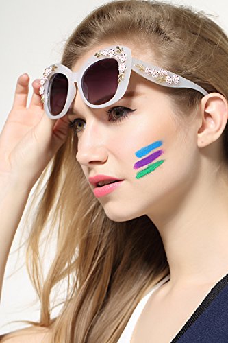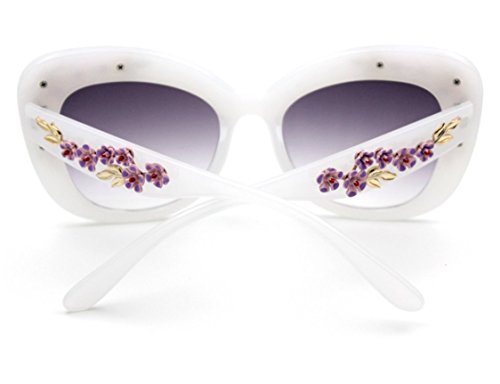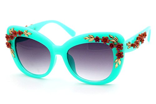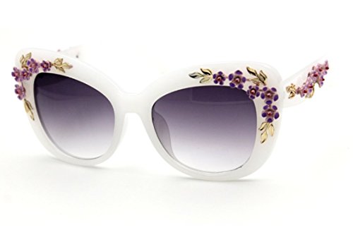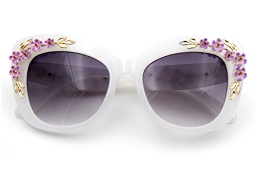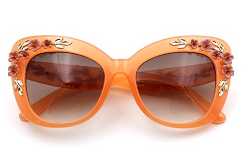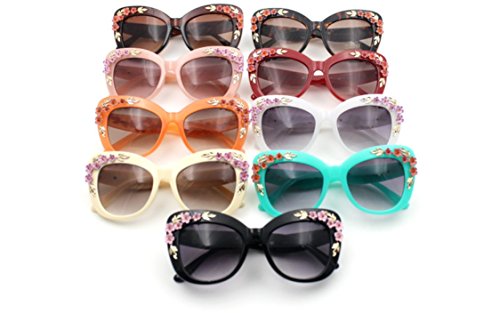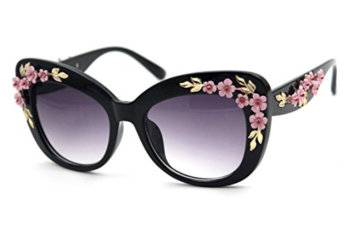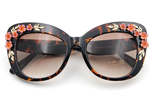 Product Description Hide early mornings and late nights in these laquered cat-eye shades with floral detailing at sides. Perfect with a flirty skater dress and sky-high platforms. Add some flashy style this season with these flower embellished cat eye frames that have you looking super glamorous this sunny season.