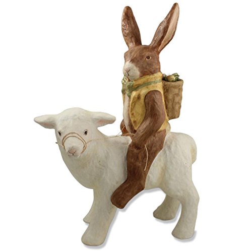 Bethany Lowe Vintage Spring Large Rabbit on Lamb Figure, 19"