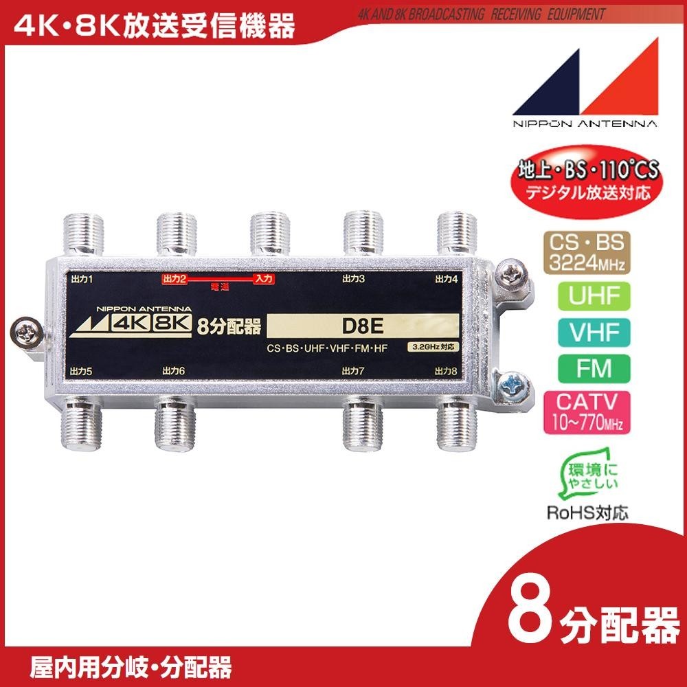 | 仕様 | 屋内用・8分配器 地上・BS・110度CS デジタル放送対応 CS(3224MHz)・BS・UHF・VHF・FM・CATV(10~770MHz) RoHS対応 入力-出力2 電通端子 最大DC15V・0.8A、AC30V・1A 入出力インピーダンス:75Ω(F型) 使用温度範囲:-10~+40 ●周波数帯域10~76MHz 分配損失:12.5dB以下 端子間結合損失:16dB以上 電圧定在波比(VSWR):2.0以下 ●周波数帯域76~222MHz 分配損失:12.0dB以下 端子間結合損失:20dB以上 電圧定在波比(VSWR):1.8以下 ●周波数帯域222~770MHz 分配損失:13.0dB以下 端子間結合損失:18dB以上 電圧定在波比(VSWR):1.8以下 ●周波数帯域770~1489MHz 分配損失:13.5dB以下 端子間結合損失:15dB以上 電圧定在波比(VSWR):2.0以下 ●周波数帯域1489~2150MHz 分配損失:17.0dB以下 端子間結合損失:15dB以上 電圧定在波比(VSWR):2.0以下 ●周波数帯域2150~2681MHz 分配損失:18.0dB以下 端子間結合損失:15dB以上 電圧定在波比(VSWR):2.3以下 ●周波数帯域2681~3224MHz 分配損失:19.3dB以下 端子間結合損失:15dB以上 電圧定在波比(VSWR):2.5以下 |