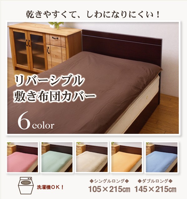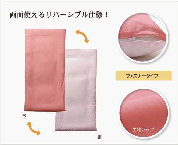 サラッとした肌触りのリバーシブルタイプのカバーです。選べる6色展開です。季節を問わず、オールシーズンご使用頂けます。素材が同じで同色の掛け布団カバー、枕カバーも別途取り扱いがありますのでトータルでのコーディネートもお勧めです。ご家庭の洗濯機で洗えます(洗濯ネット使用)。乾きやすい仕様になっておりますのでお手軽で清潔にご使用頂けます。本商品はフルオープン式ファスナー付きで、縦方向にファスナーが付いているためスムーズな出し入れが可能です。
