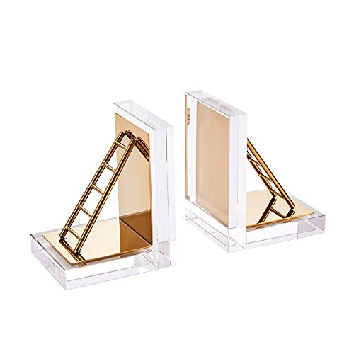 Benzara Adorning Metal and Glass Book Ends Bookends (Set of 2), Clear/Gold