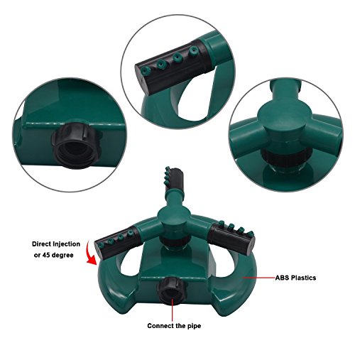 Easy use - Rotating spray nozzles allow for customizable watering to meet your lawn's exact needs. The angle can be set to 90 degrees for more compact watering or 45 degrees for watering larger areas.