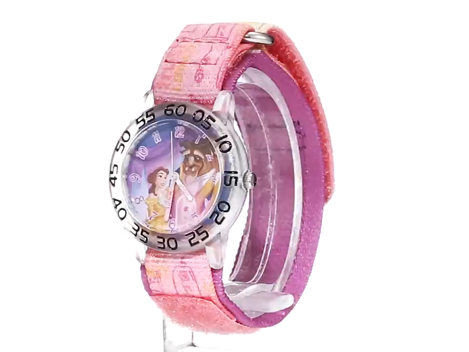 Disney Girl's 'Belle' Quartz Plastic and Nylon Watch, Color:Pink (Model: W002928)