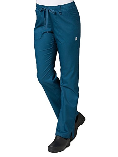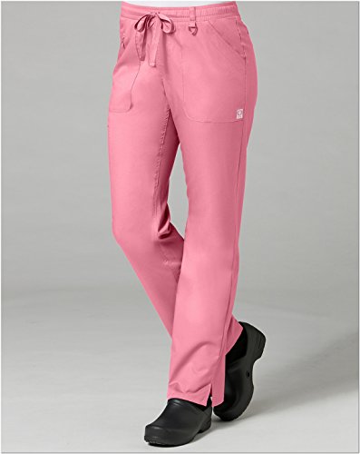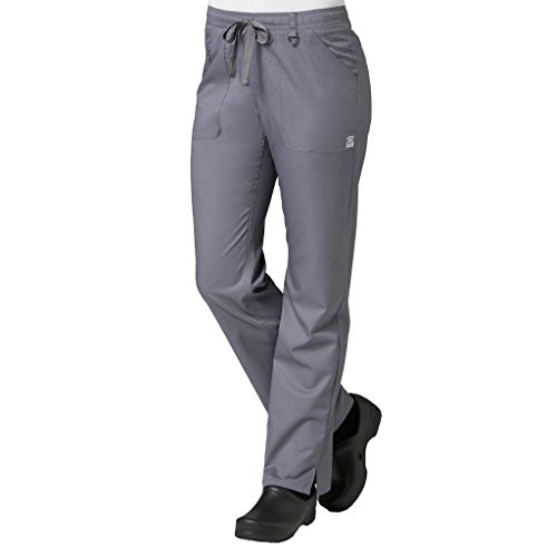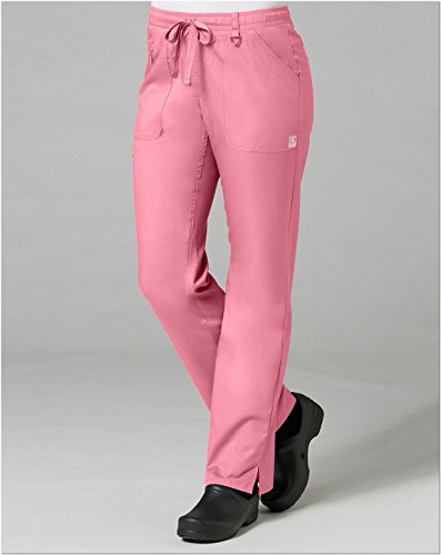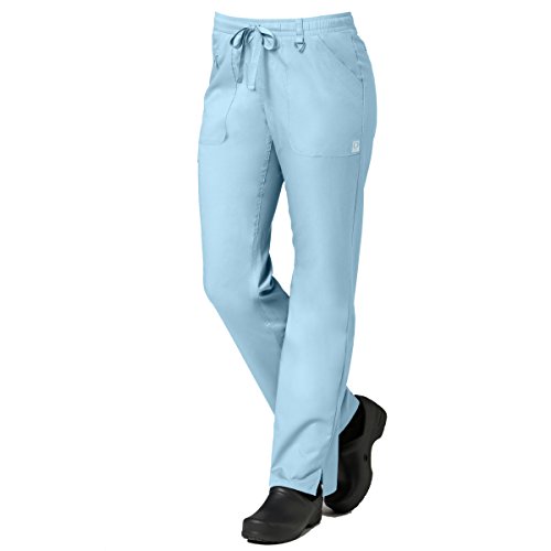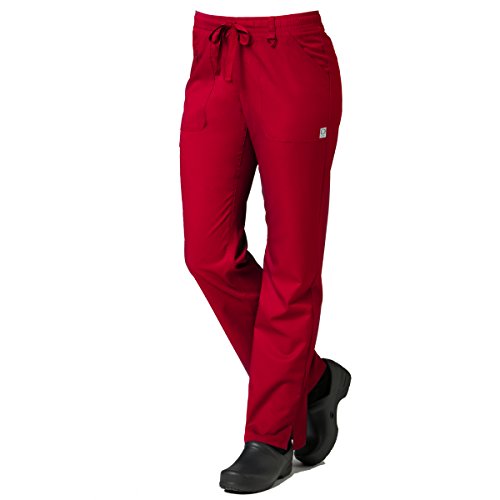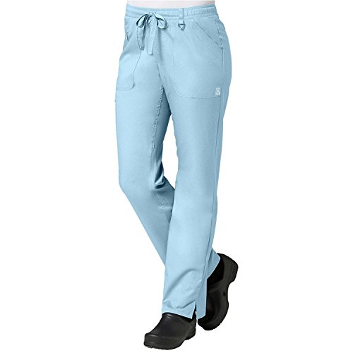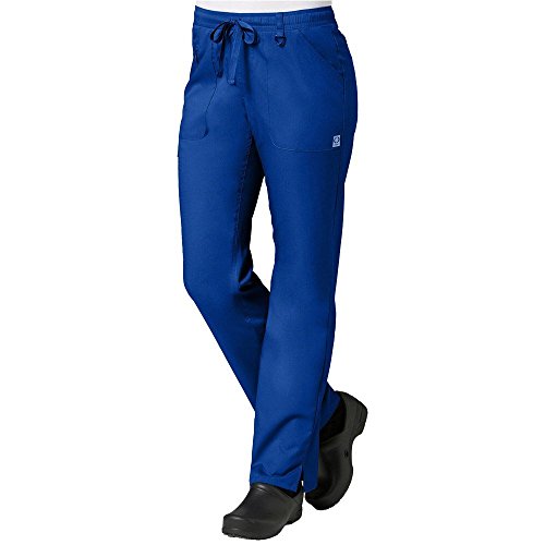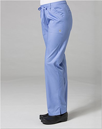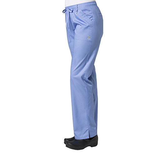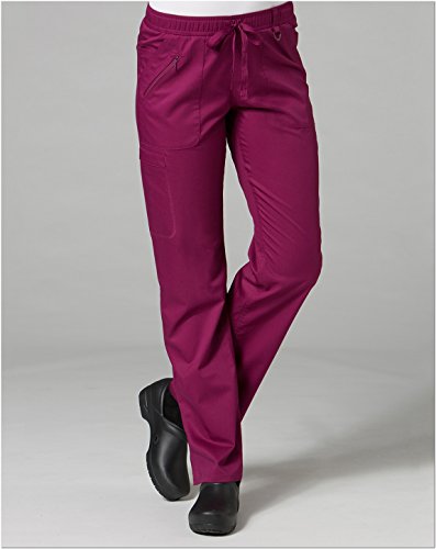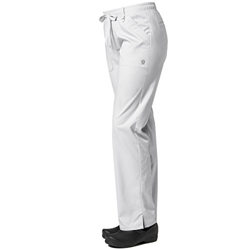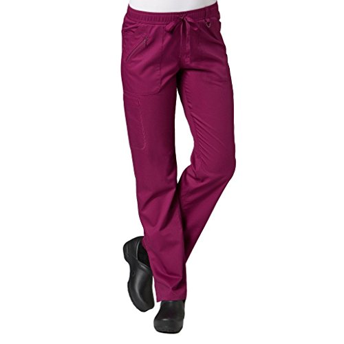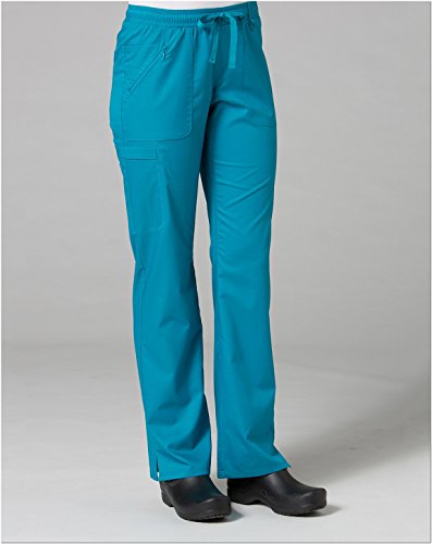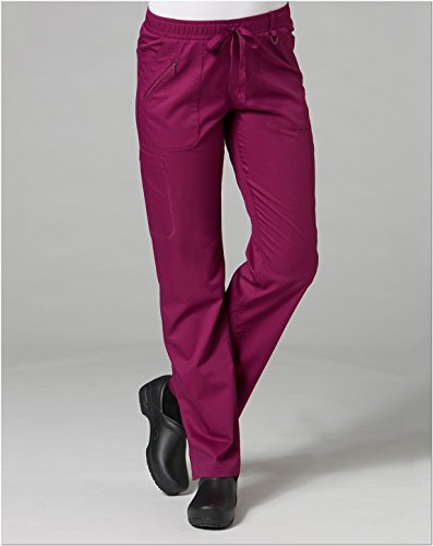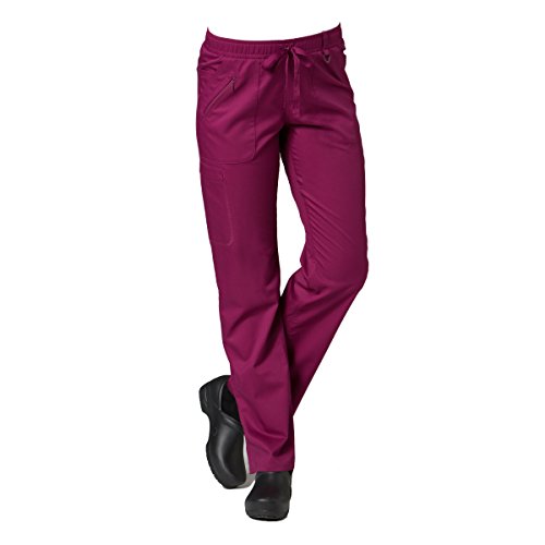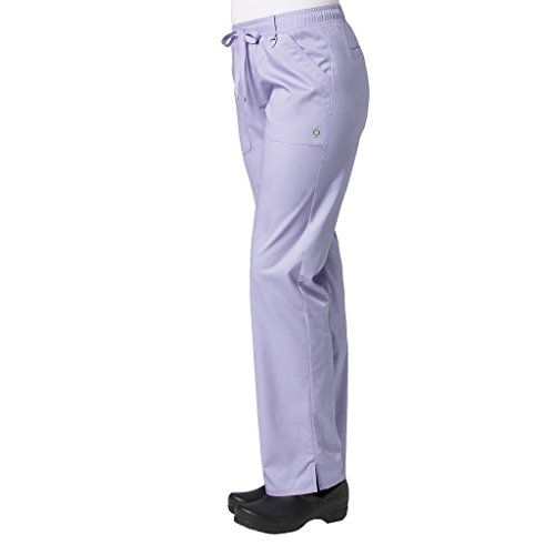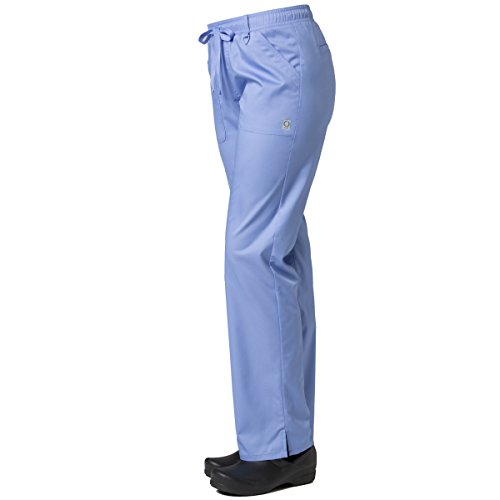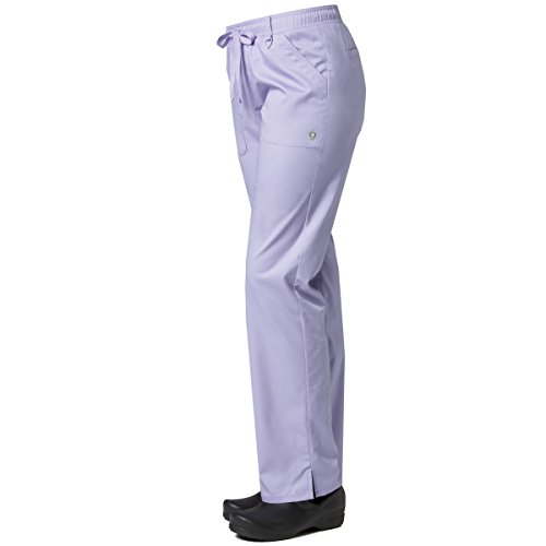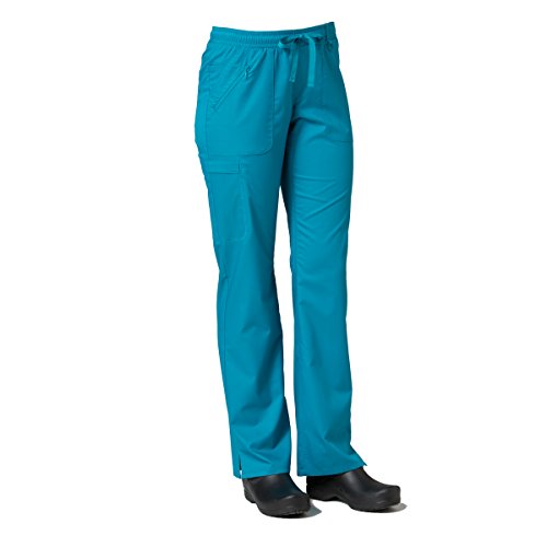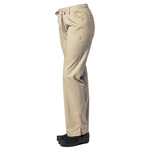 The EON Women's COOLMAX® Elastic Waistband Cargo Scrub Pant makes washing and wearing easier than ever. With almost no shrinkage you can depend on these scrub pants again and again. Missy fit Mid rise Straight leg Elastic waistband with drawstring tie closure Triangle ring at belt loop Two front patch pockets with exterior zip pocket and interior cell phone pocket Two back welt pockets Side vents at hem COOLMAX® technology moisture-wicking fabrication InvistaTM certified yarn Easy wash and wear 0.5% shrinkage 59% polyester 22% rayon 19% Elastrell-P Total inseam: 30½" in Regular 28" in Petite and 33" in TallFeature