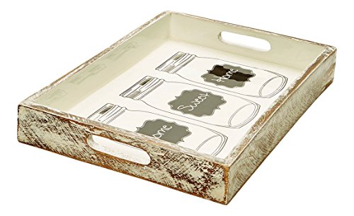 Poppet's Wooden White Wash Tray with Mirror Finish by Madhu's Collection