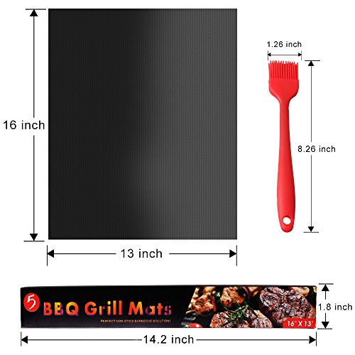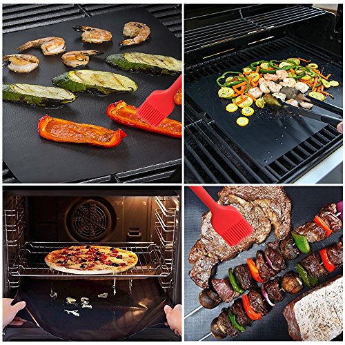 Grill Mat Set of 5 - 100% Non-stick BBQ Grill & Baking Mats for Charcoal, Gas or Electric Grills, or Cooking & Baking - Easy to Clean - Dishwasher Safe - Lifetime Waranty (Black)