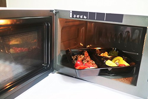 ? Trust our quality : Containers are made from 100% BPA Free food safe materials. ? Freezer Safe : Cole - low as -4˚F ? Microwave Safe : Hot - up to 248˚F Our containers are made from microwave safe materials and are suitable for reheating precooked foods. Frozen food must be defrosted before reheating.Never use container in a conventional oven, convection oven, toaster oven or on a stovetop heating element. Always leave the lid open when using the microwave. ? Dishwasher Safe on the Top Rack Only : Prep -> Rinse -> Repeat ! ? Dimensions : Box Size - 7.8 x 5.5 x 1.4 inch Large cavity size - 3.8 x 6.3 x 1.4 inch, Two small cavity size - 4.4 x 3.0 x 1.4 inch, Lid size - 9. 8 x 7.5 x 0.8 inch Volume 16.8 and 9 oz, Total 32 oz 0 |