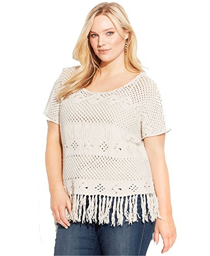 -. Title : INC International Concepts Beige Plus Size Short-Sleeve Fringed Sweater