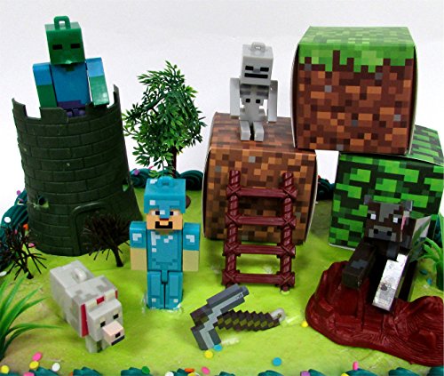 -. Feature : MINECRAFT 14 Piece Birthday CAKE Topper Set Featuring Random Minecraft Figures and Decorative Themed Accessories, Figures Average 1" to 3" Inches Tall / Assembly Required / Accessories May Vary
