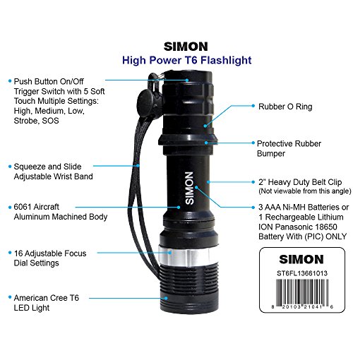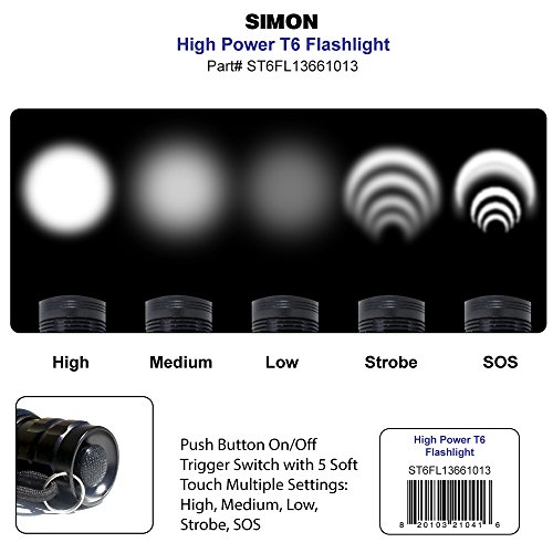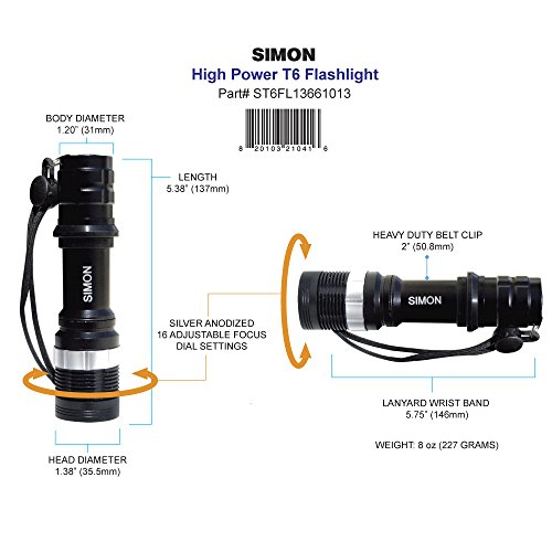 Simon Cree Led Flashlight Top LED Tactical Flashlight used by Law Enforcement. The Brightest LED Flashlight Torch with 500 Lumens. Simon High Power Bright Flashlight T6 Pro Part #ST6FL13661013