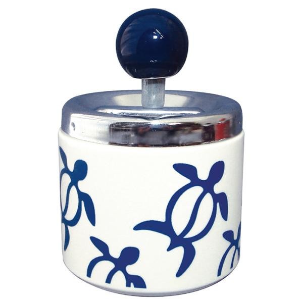 ハワイアンなタートル柄がおしゃれ♪上からハンドルを押すと、フタが回転しながら下がり、灰や吸殻を中に落とす事ができます。
