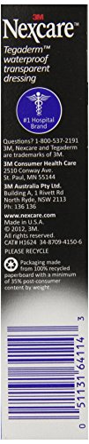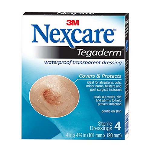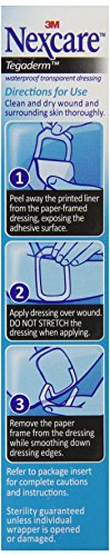 Nexcare Tegaderm Waterproof Transparent Dressing is a top choice in hospitals when transparent dressings are needed. The unique properties of Nexcare Tegaderm Waterproof Transparent Dressings make it flexible with your body and breathable for greater comfort while protecting abrasions, cuts, minor burns, blisters, and post-surgical incisions. It is waterproof, staying on in the bath or shower, and seals out water, dirt and germs to help prevent infection. Tegaderm Dressing can be worn for up to 7 days, making it ideal for securing IV catheters or other tubing, and for post-surgical dressings. With all that, it is still gentle on the skin, protecting even reddened or fragile skin. Tegaderm Waterproof Transparent Dressings are also hypoallergenic and not made with natural rubber latex.