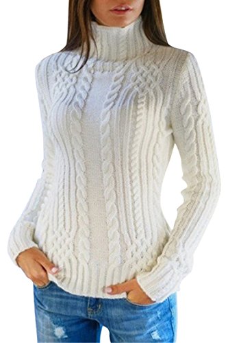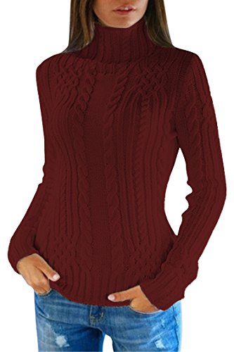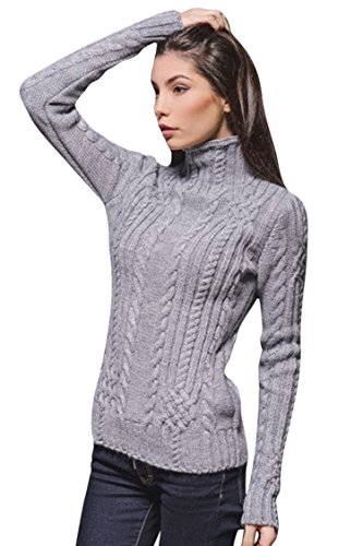 Pink Queen Women's Cable Knit Crewneck Casual Pullover Sweater