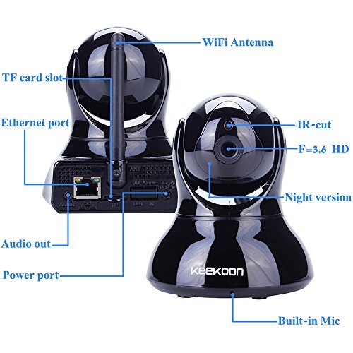 KEEKOON KeeKoon Black IP Camera,720P HD WiFi Surveillance Wireless Baby Security Monitor/Indoor CCTV Support망원경 오페라 글라스
