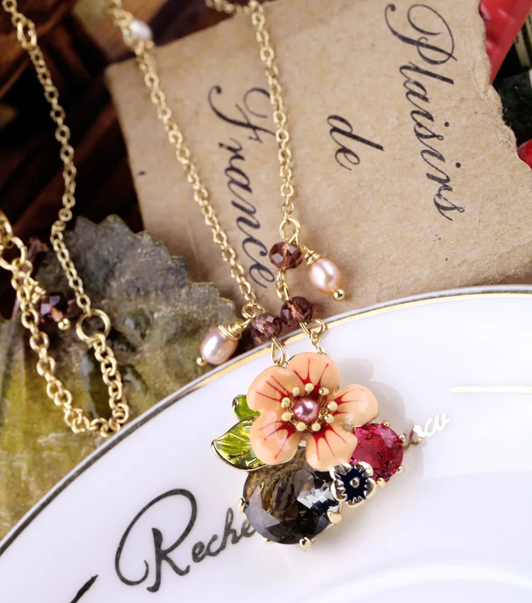Production name ::Hot Sale SUNNY BEACH Pendant Necklace Enamel Flowers