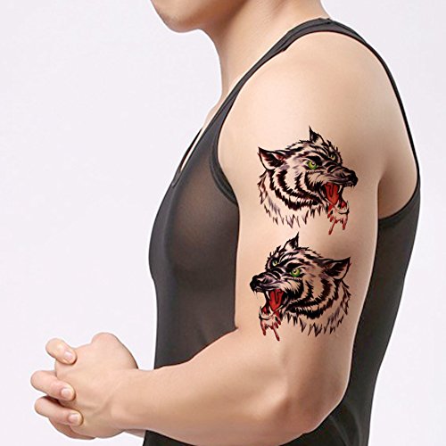 TAFLY Water Transfer Fake Tattoo Waterproof Temporary Tattoo Sticker Men Wolf Tattoo 5 Sheets