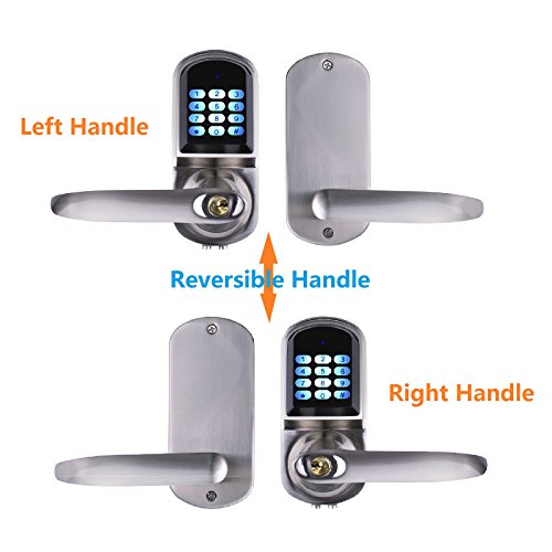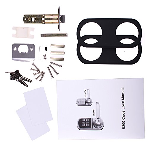 -. Feature : Reversible handle. Suitable for both right handle door or left handle door(default for right handle). 60/70mm adjustable standard single latch. / 4 Unlock options: codes, cards, code+card, mechanical key. Keyless entry providing enhanced security and security. Auto lock funcion. / 200 independent user codes ( code length: 4-8 digits). One-time Code, convenient for visitors, guests, house keepers, etc.Easily and quickly to add or delete each user individually. / Backlit keypad makes it easy to use at night. Easy installation, convenient to unlock with codes or cards. You can leave your keys behind with this lock! Suitable for home, office, bank, condo, membership public club, gym, restaurant, hotel, dormitory, etc. / Video guide of Installing&Changing handle direction&Programming are included in the package. If you have any other problem, please contact EZEC via email. 100% Problem solving guarantee!