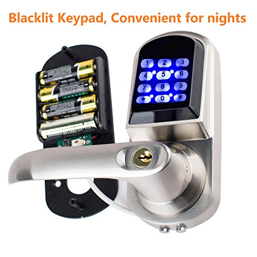 -. Title : EZlock Electronic Keyless Backlit Keypad Door Lock, Unlock by Code, Card, Code+ Card, Mechanical Key