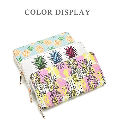-. Title : Badiya Women Leather Long Zipper Wallet Pineapple P.R.Int Designer Clutch Purse Credit Card Holder