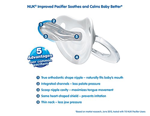 -. Binding : Baby Product -. Brand : NUK -. Department : baby-boys -. EAN : 0885131141606 -. Feature : Orthodontic nipple helps promote healthy oral development / Gently exercises your baby's tongue, palate and jaw and promotes proper teeth alignment by helping your baby avoid thumb sucking. / Helps to soothe and comfort your baby so Mom can sleep / NUK Pacifiers are the #1 selling pacifier brand in the US and used by thousands of US birthing hospitals every year / BPA Free -. Label : NUK -. Manufacturer : NUK -. Model : 14160 -. MPN : 14160 -. NumberOfItems : 1 -. PackageQuantity : 1 -. PartNumber : 14160 -. ProductGroup : Baby Product -. ProductTypeName : BABY_PRODUCT -. Publisher : NUK -. ReleaseDate : 2016-11-30 -. Size : 0-6 Months -. Studio : NUK -. Title : NUK Sports 2 Piece Orthodontic Pacifier, Girl, 0-6 Months -. UPC : 885131141606