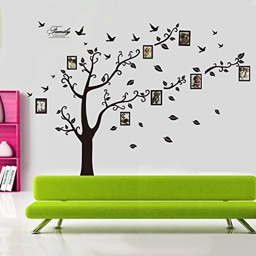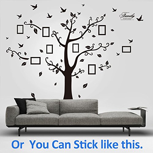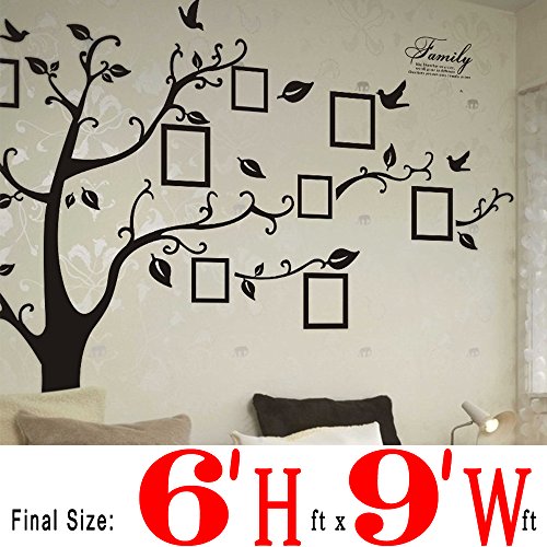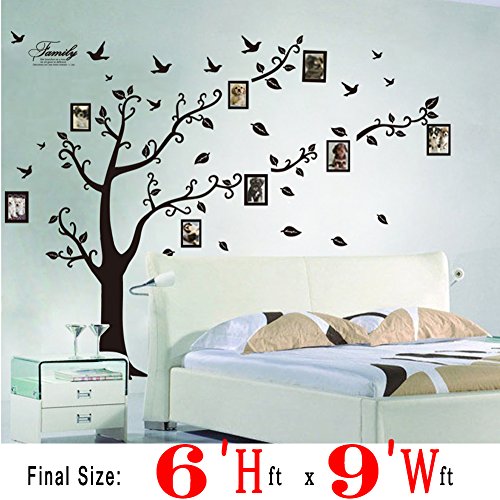 Dagou Huge 6' Ft(h) X 9' Ft(w), Memory Family Tree Photo 1set DIY Flower & Love World Large Art Decor Home Stickers Removable Vinyl Wall Decals for Living Room