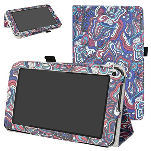 DigiLand DL718M / DL721-RB Case,Mama Mouth PU Leather Folio 2-folding Stand Cover with Stylus Holder for 7.0" DigiLand DL718M / DL721-RB Android Tablet,Mushroom Fantasy