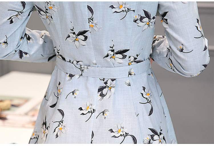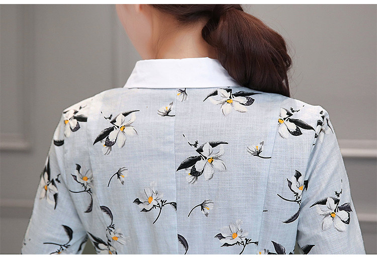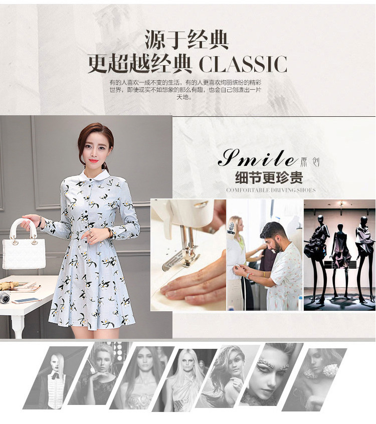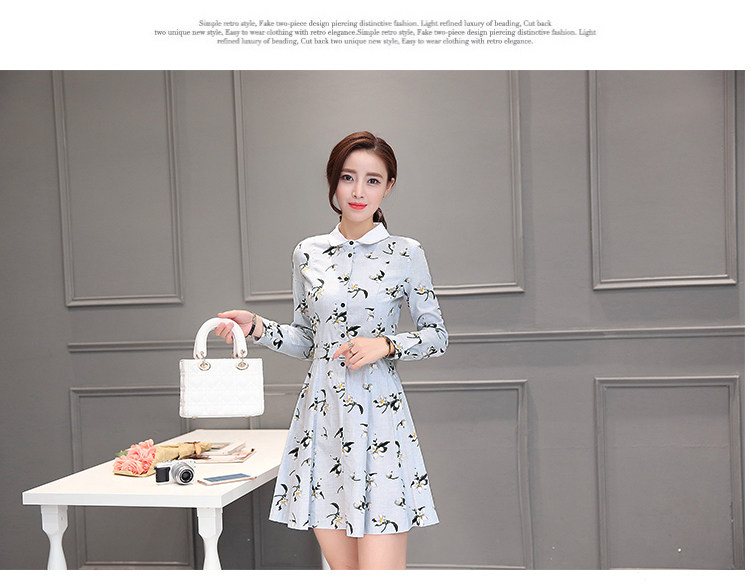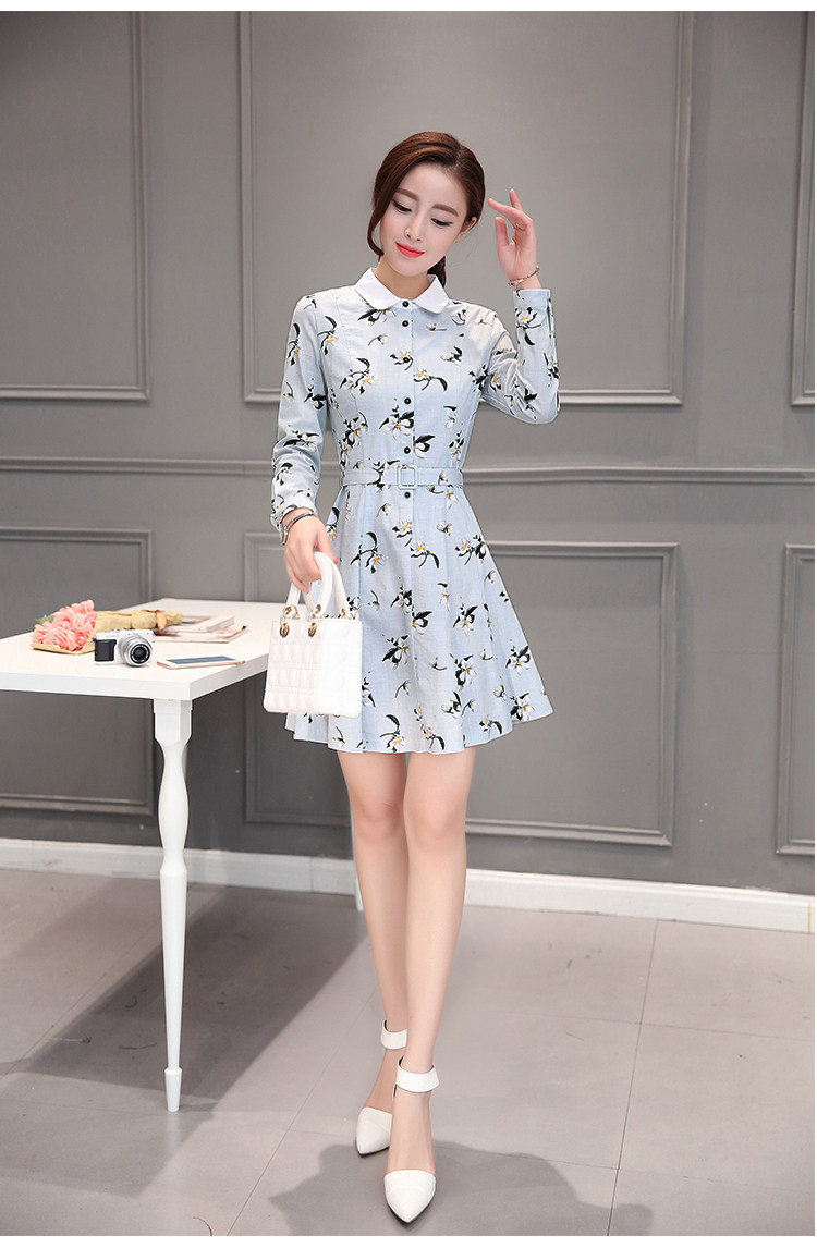 2016秋装新款女装韩版娃娃领印花修身显瘦中长款长袖衬衫连衣裙潮
