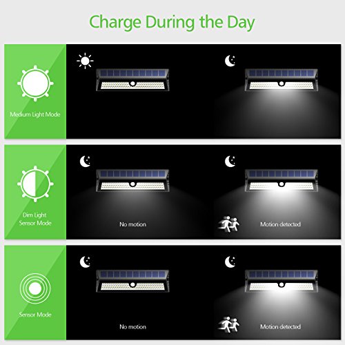 - 3 Lighting Modes. Equipped with upgraded motion sensor, Mpow solar light detects motion efficiently and quickly. It comes with 3 modes: Medium Light Mode Without Sensor/ Dim Light Sensor Mode/ Sensor Mode. Such a fantastic light is very conducive to energy saving and environmental protection.