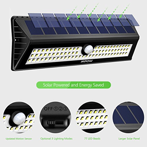 Mpow 77 LED Solar Lights, Bright Outdoor Security Lights with Motion Sensor Wireless Waterproof Lights for Garden, Wall, Path, Patio, Front Door, Deck, Yard, Driveway - 1 Pack