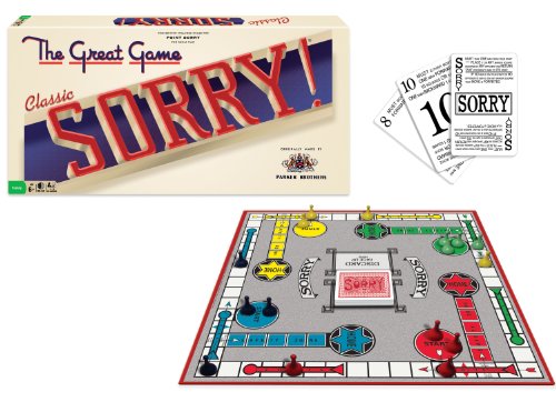 -. Feature : Ages: 6 and up / Players: 1 to 4 / Contents: Heavy-duty bi-fold gameboard with original artwork, 16 iconic Sorry pawns, Deck / Item weight - 1.95 lbs. / Players try to travel around the board with their pieces faster than any other player / Sorry; is for two to four players / Includes gameboard with original artwork, 16 iconic sorry pawns, deck of 44, cards illustrated instructions