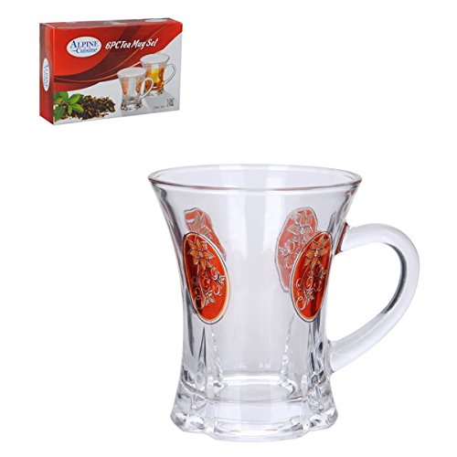 -. Brand : Alpine Cuisine -. Color : Clear, Gold -. EAN : 0643700188786 -. Feature : Tempered Glass safe for Hot Drinks - Clear Glass with Gold Trim on either side. / Elegant Squared Design makes a beautiful holiday or housewarming gift / Set of 6 cups -170 ml each (approximately 6 oz) / Perfect for a short coffee or tea shot in the Turkish/Middle Eastern style / Dishwasher safe -. Label : Alpine Cuisine -. Manufacturer : Alpine Cuisine -. Model : 3016-6 -. PackageQuantity : 6 -. ProductGroup : Kitchen -. ProductTypeName : KITCHEN -. Publisher : Alpine Cuisine -. Size : 170 ML, 6 oz -. Studio : Alpine Cuisine -. Title : Turkish Tea Glass Mugs Set of 6 Cups Golden Daisy Design -. UPC : 643700188786