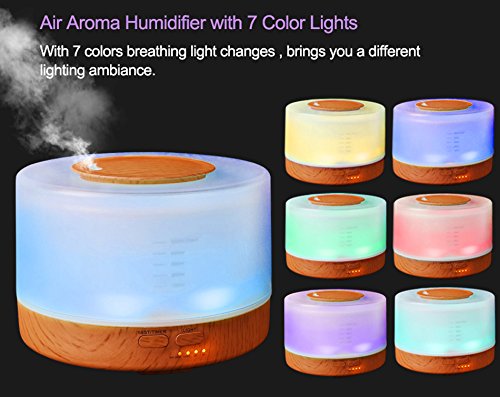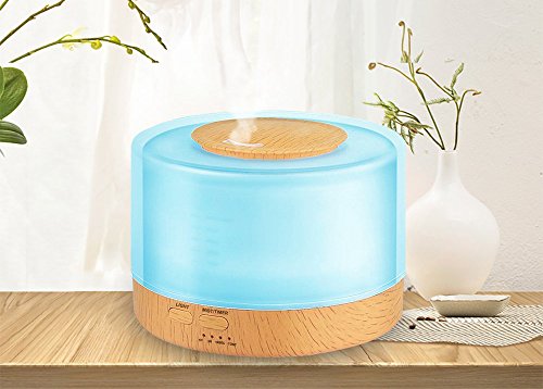 Ledsniper Essential Oil Diffuser, 500ml Ultrasonic Aroma Cool Mist Humidifier with 7 Color Light Changing And 4 Timer Settings