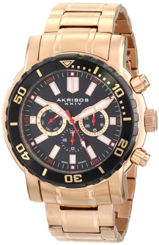 -. Title : Akribos XXIV Men's AK675RG Grandiose Swiss Quartz Multifunction Black Dial Rose-tone Stainless Steel Bracelet Watch