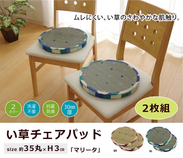 【商品名】チェアパッド クッション い草クッション 『マリータ』 ブラウン 約35cm丸×H3cm 2枚組