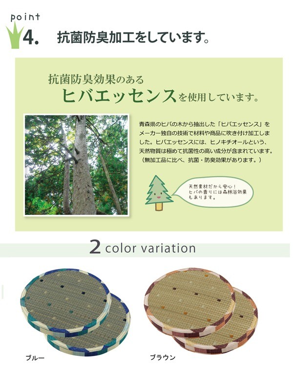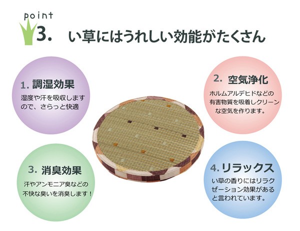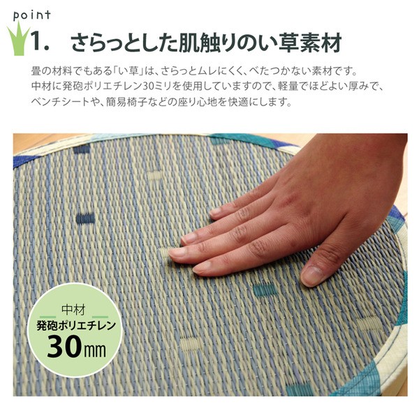 【素材】表地=い草※普通織 裏地=ポリエステル100% 中材=発泡ポリエチレン30mm