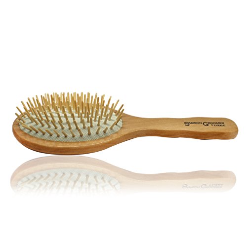 Wooden Hair Brush - Luxury Large Anti Static Wooden Massage Hair Brush with Wooden Pins - Samson Groomer Oval Hair Brush by Luxelu