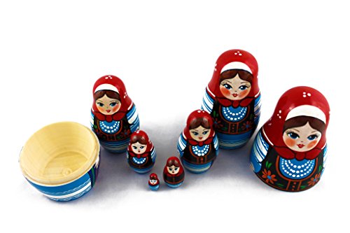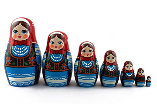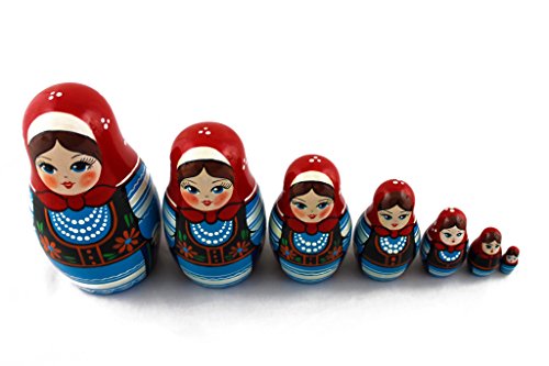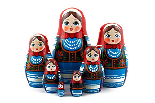 Studio : MHBY Publisher : MHBY Binding : Toy Product Description Hand-Painted. 7 piece set. Size: 13.5 cm (5.3"). Materials: natural wood, water based paint, clear lacquer. Please look at the photo's carefully as they are an important part of the description. Only handmade. Only environmentally friendly wood and paint. Patterns, colors and shapes may vary slightly due to the fact that all authentic nesting dolls are handmade. Matryoshka is the most famous Russian souvenir, it is considered to be a phenomenon in the world culture, a puzzle wrapped in a mystery inside an enigma, soul of Russia. The art of the Russian matryoshka is the most comprehensive account of the history, production, varieties, and creators of these charming nesting dolls. In their short-100 year history, these nesting dolls have become more than a popular souvenir or a folk craft; they are a medium for the talented Russian artists - and a symbol of Russian folk culture. Take a piece of happiness with you! The Russian Matryoshka Nesting Dolls will decorate any place and bring joyfulness and good mood to its owners. It is also rather funny gift for your friends! 0