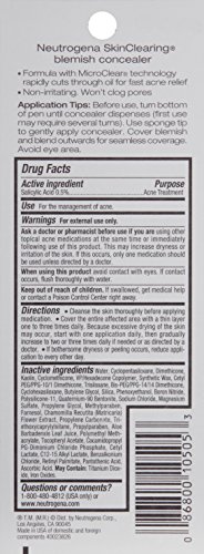 ReleaseDate : 2010-11-23 Studio : Neutrogena Cosmetics Publisher : Neutrogena Cosmetics Binding : Misc. Product Description Neutrogena SkinClearing Blemish Concealer features MicroClear technology to quickly reduce the appearance of blemishes for clearer-looking skin. Developed with by dermatologists, this oil-free and non-comedogenic formula is easy to apply and provides natural-looking color. Cover blemishes for a beautifully flawless look. 0