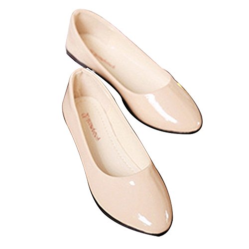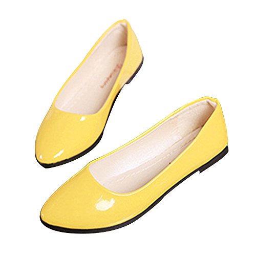 YING LAN Women's Simple Round Toe Low-cut Wide Width Slip-on Flats Pumps Shoes