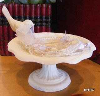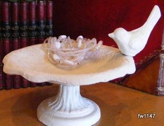 -. Title : Cast Iron Bird Feeder ~ Soap Dish Antique White Pedestal Vintage Style