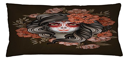 Day Of The Dead Throw Pillow Cushion Cover by Ambesonne, Spanish Woman with Festive Calavera Ma...