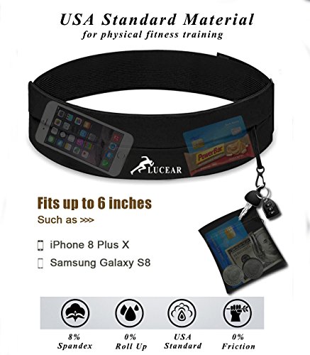 **Many our customers say that once you start running, you will addict to it, fall in love with running. No matter How, Try it by ourselves, We will know the fact.** The advantage of our Running Belt ADJUSTABLE TO COMFORTABLY FIT: No need to worry about if fits or not, Fit waist size from 25 Inches/63cm to 41 Inches/105cm with flexible velcro closure,very comfortable and light. Easily to wear. ENJOY YOUR OUTDOOR OR GYM ACTIVITY WITH YOUR HANDS FREE! Lucear running gear for all family! KEEP YOUR PRECIOUS IPHONE 6 7 8 PLUS AND OTHER NECESSITIES SAFE AND COMFORTABLE! Concentrate on Your Running! HIGH-QUALITY Material: Apply high-quality Nylon Lycra material to waterproof and used high-quality diving fabrics to sweatproof.Breathable and Durable,REFLECTIVE 3M LOGO will make you safe at night or morning. SECURITY ZIPPER MONEY BAG: Security zipper money bag on the key clip. It can be used as travel money belt that hold your cash, credit cards, keys and lighter.Your valuables are out of sight, protected, safe and comfortable. So Click the "Add To Cart", Start your Running Journey from this running belt on. 0