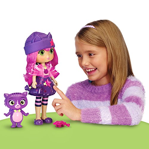 Bring home all the magic of Charmville with the Little Charmers Hazel Magical Doll. Meet Hazel, the energetic and big hearted leader of the Little Charmers. She‘s a Charmer in Training and may not know all the spells yet, but she loves to share a special spell with you. Watch as Hazel’s Cape magically disappears! Just press the button on her bodice and watch as her cape zips away like magic. Hazel also has 8 unique phrases and sounds she wants to share with you. And Hazel wouldn’t be complete without her special magic wand, hairbrush and her best kitty friend Seven. Now you can have everything to recreate magic and fun adventures of Charmville! Sparkle up Charmers with the Magical Hazel Doll!Feature
