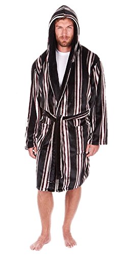 Studio : Sleepy Joes Publisher : Sleepy Joes Binding : Apparel Product Description Luxury mens dressing gown ,bathrobe .Supersoft fleece . Being from the Sleepy Joe Collection they are excellent quality with a high standard finish . Hooded with pockets to the front and standard belt fastening . We have them in the black stripe and the navy . Sizes Medium chest 42-44 Large chest 44-46 Xlarge chest 47-49 XXlarge chest 50-52 XXXlarge chest 53-55 Positive feedback is very important to us we do issue a full refund if not completely happy with the item purchased , please contact us should you have any issues . Please feel free to take a look in our shop it is an aladdins cave of goodies more and more listed daily . All of our overseas post is sent priority mail 0