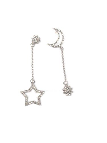 -. Feature : 月と星をデザインしたアジアンテイストのデザインピアスです / 揺れるイヤリングがキラキラに演出してくれます / ユニークなアシンメトリーなデザインが目を惹きます / ゆらゆらと揺れる耳元のピアスは思わず目がいきます / お気に入りのひとつに加えてみてください 月と星の左右異なるデザイン かわいらしい